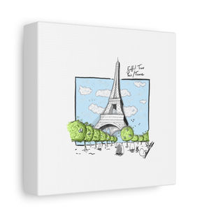 Eiffel Tower Matte Canvas PrintCapture the essence of Paris with this elegant matte canvas print featuring a hand-drawn depiction of the Eiffel Tower, a timeless symbol of romance, beauty, and architectural brilliance. This artwork showcases the tower framed by lush greenery and a serene Parisian skyline, evoking the charm and allure of the City of Light.Printed on premium materials and crafted with care, this canvas is designed to elevate any space, whether it’s your living room, bedroom, or office. The sophisticated design makes it a perfect gift for lovers of art, travel, or French culture.Key Features:Premium Materials: Made from a cotton and polyester composite canvas for vibrant colors and a smooth matte finish.Eco-Friendly Frame: Inner frame crafted from ethically sourced radiata pine from renewable forests.Available in various sizes: Choose from horizontal, vertical, and square orientations to perfectly suit your space.Supportive Design: Features soft rubber dots on the back corners for stability and wall protection.Effortless Display: Comes with back hanging included for easy installation.Precision Crafted: Slight size deviations may occur due to the production process (+/- 1/8" tolerance).Celebrate the magic of Paris and bring a piece of its timeless elegance into your home with this beautifully crafted canvas print. Whether for yourself or as a thoughtful gift, this Eiffel Tower artwork adds a touch of sophistication and inspiration to any setting.