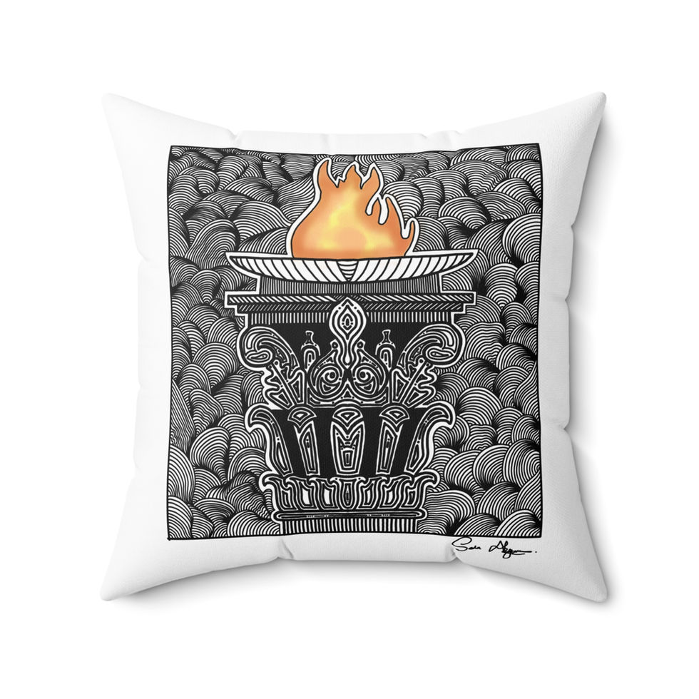 Throw Pillow, Flame of Wisdom Hand-Drawn Design by Seda Akgun, Resilience